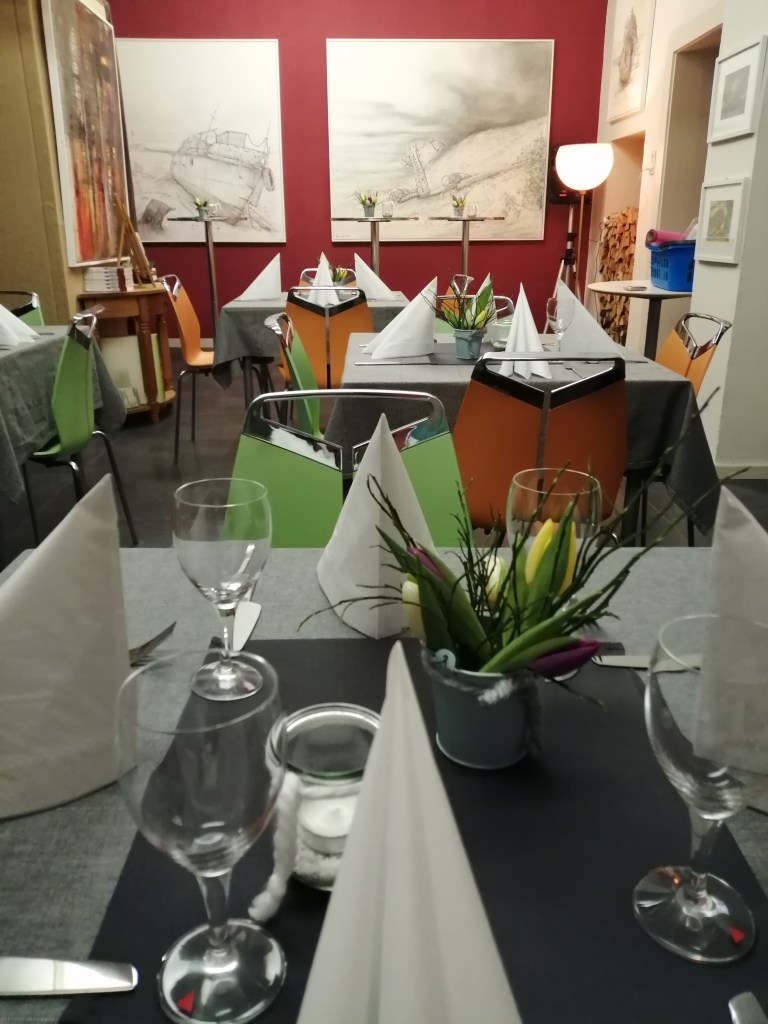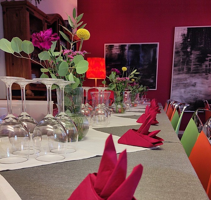 Kulinarische Geselligkeiten sind bereits ab 8 Personen möglich (z. Bsp. ein Mehr-Gänge-Menü) – bis etwa 35 Personen (1 Raum) oder auf zwei Räume verteilt bis ca. 50 Personen.