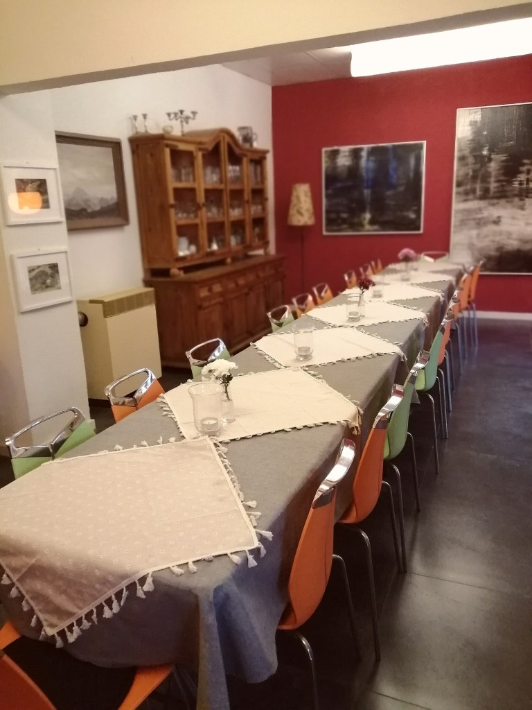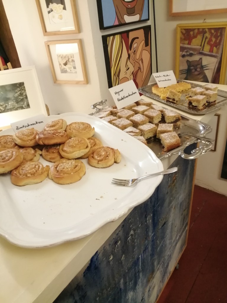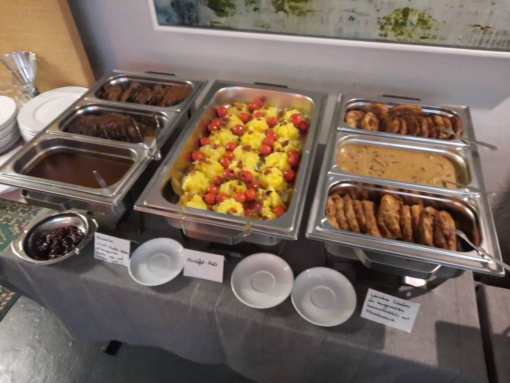 Hausinternes Catering ist möglich – Getränke, Kaffee/Tee-Flats, Kuchen und Gebäck, Fingerfood/Buffets – vegetarisch, vegan und mit Fleischgerichten in Bio Qualität.