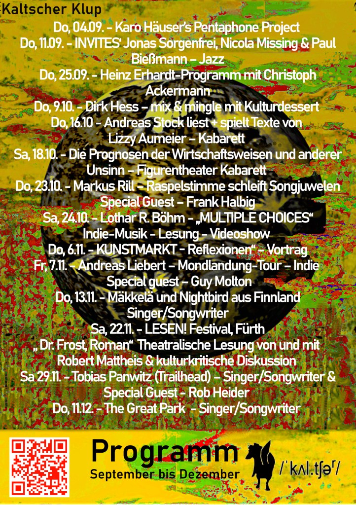 Damit bleibst du auf dem Laufenden in Sachen Events im Kaltscher Klup! Ein bis zwei Mal im Monat erhältst du alle relevanten News in Form eines Newsletters. Deine Daten sind bei uns sicher. Diese werden weder für andere Zwecke verwendet, noch werden diese an Dritte weitergegeben!