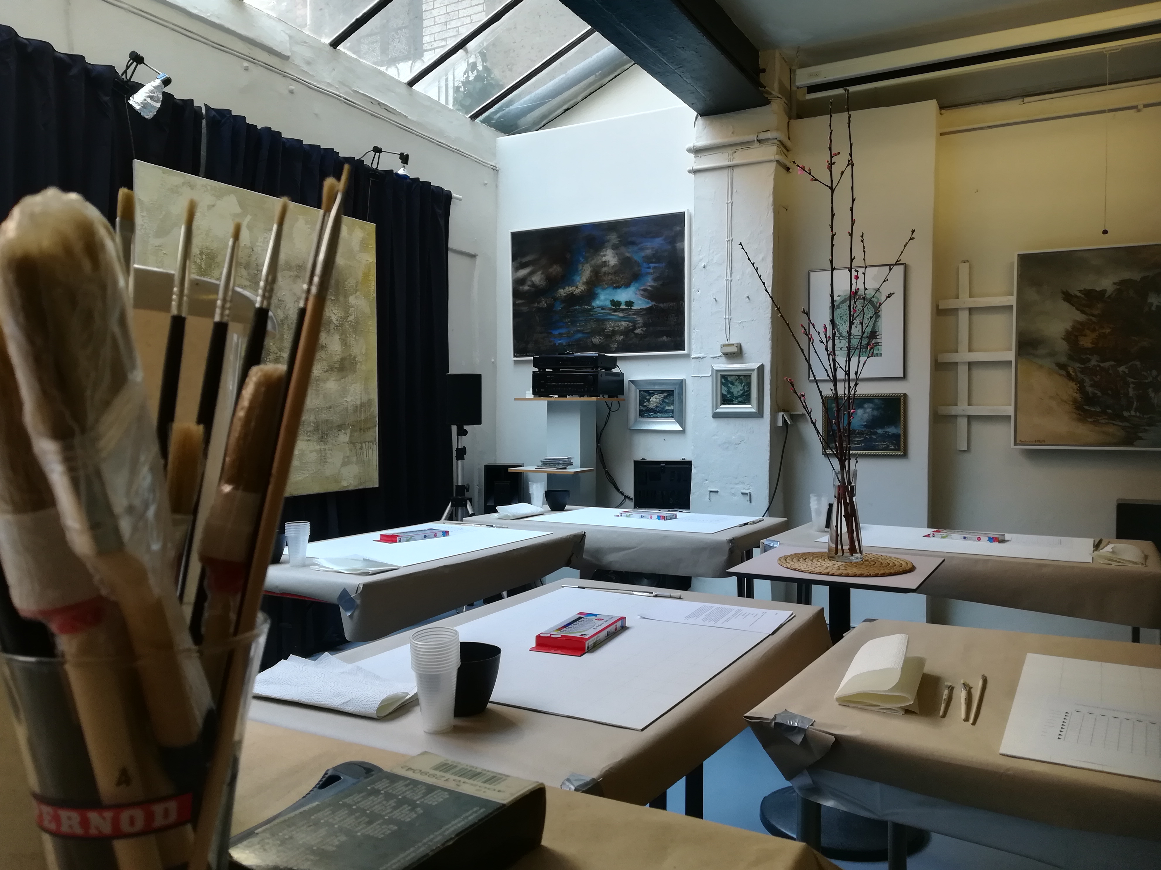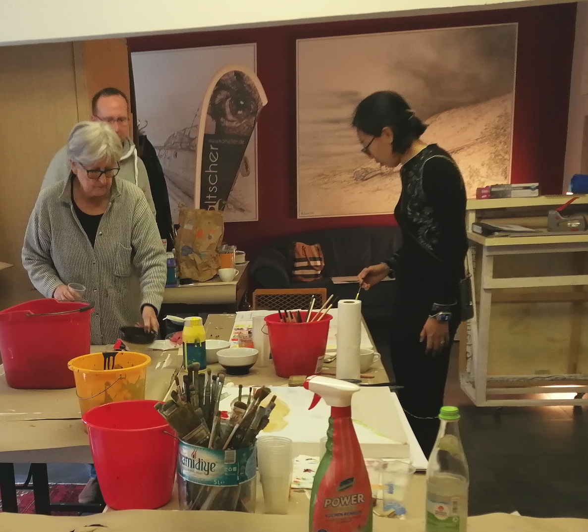 Das für die Schulung benötigte Material, u.a. Zeichenpapier, Pinsel, Stifte, Leinwand usw., wird dir zur Verfügung gestellt.
