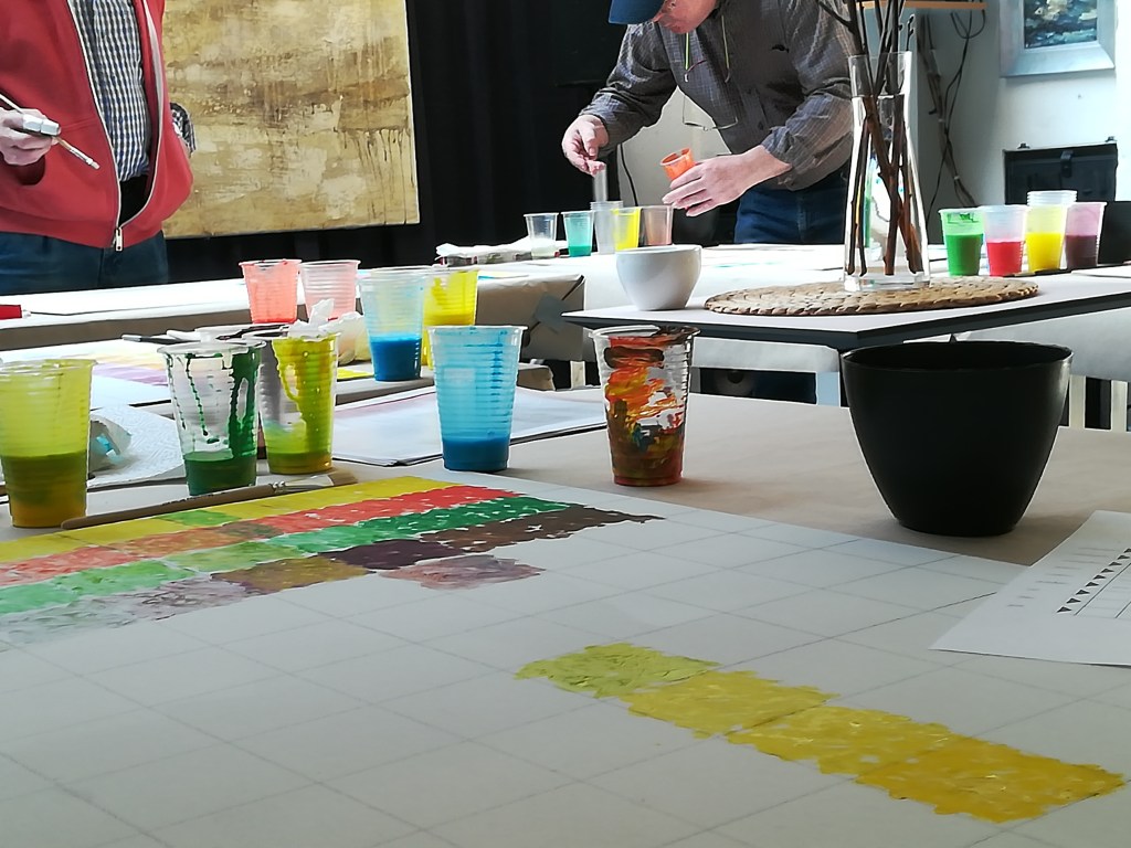 Zudem erhältst du ergänzende Einblicke in die wichtigsten theoretischen Grundlagen der Malerei. Die Malschulung wird unterbrochen durch ein gemeinsames Mittagessen und Kaffee und Kuchen-Pause am Nachmittag.