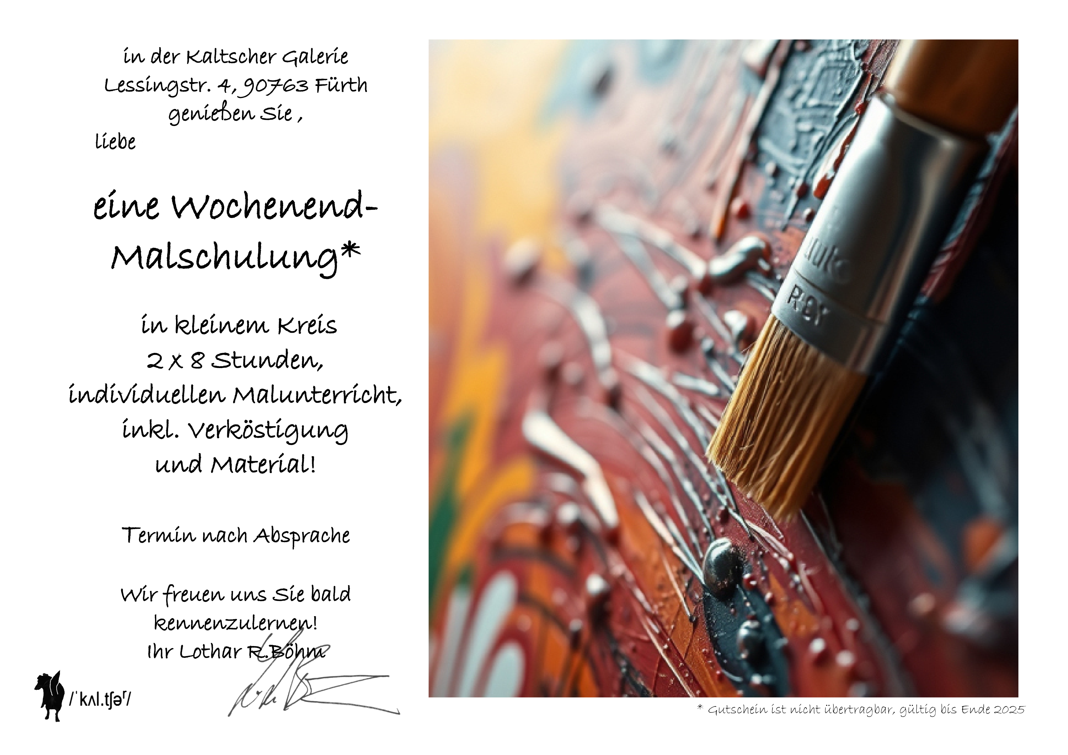 P.S. Die Wochenend-Schulung wird sehr gerne auch als ein exklusives Geschenk gebucht. Fordere gerne bei Interesse kostenfrei deinen individuell und von Künstlerhand gestalteten Gutschein an!