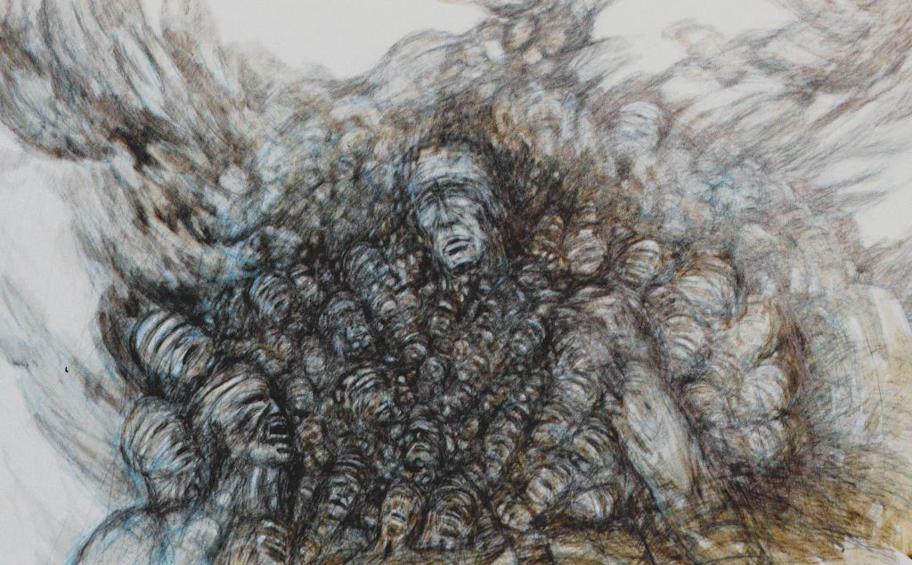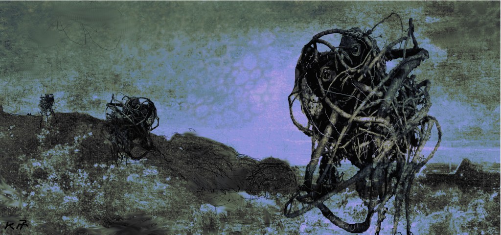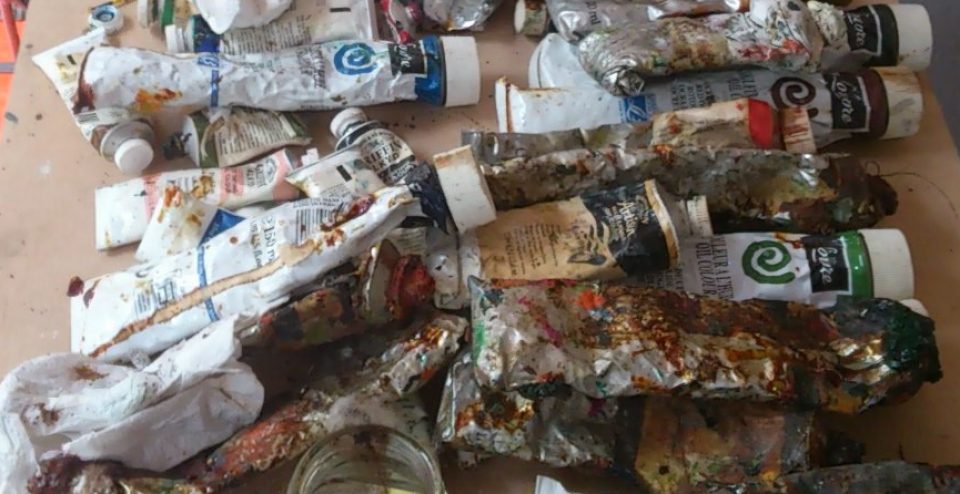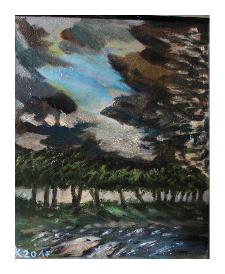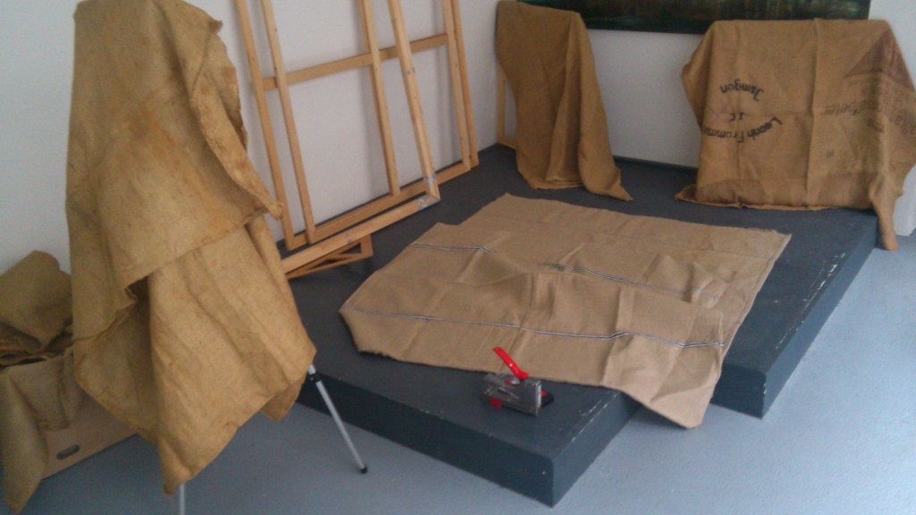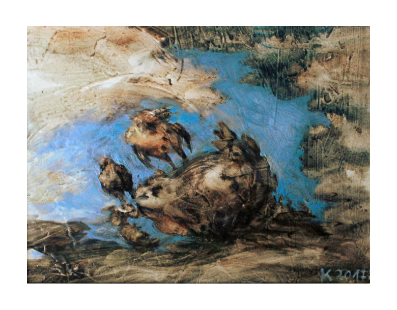 Technique – (Allmost) Oil color on sacking, wood or canvas – primer: spatula and tobacco sud.