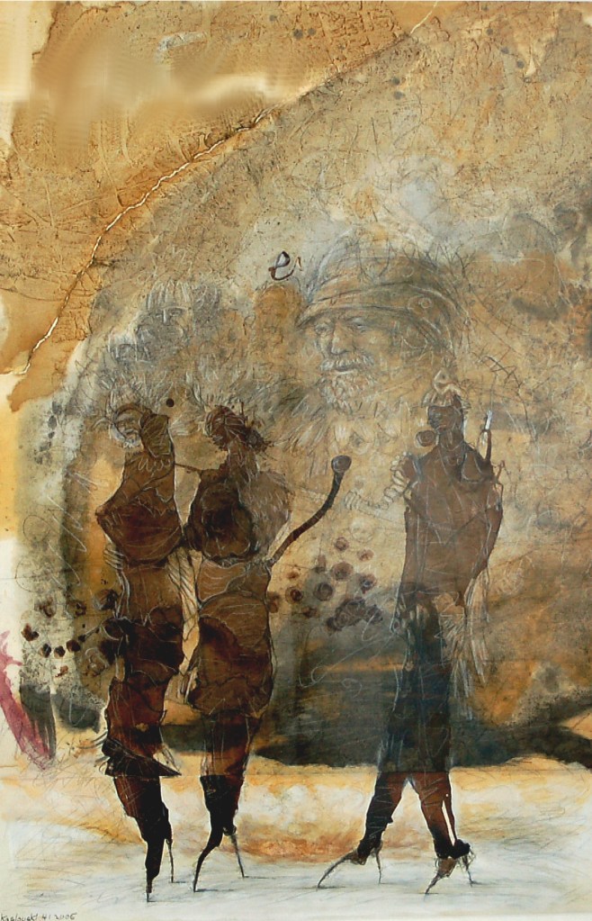 Looking back upon the long history of artists within the Böhm family, KASLOVSKI (Lothar Böhm) feels that his art is still an act of liberation and self determination. More than 150 projects and art shows give evidence of the enormous energy and powerful cosistency, KASLOVSKI shows in his works. All of his endeavours only serve one single reason: to capture KASLOVSKI`s view on modern art and its presentation. He calls himself „cross artist“. He loves to combine oldfashioned traditions with modern thinking. His personal approach to modern art disassociates clearly from shallow gestures and strategic market conformity. He defines art as a variable visualisation melting knowledge and experience, skillfullness and that something what is hidden into one, at a personal limit and at the exact time of when it happens. His artworks are bursting with energy, his ductus emphasizes the mystical aura of his exceptional artwork.