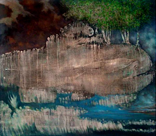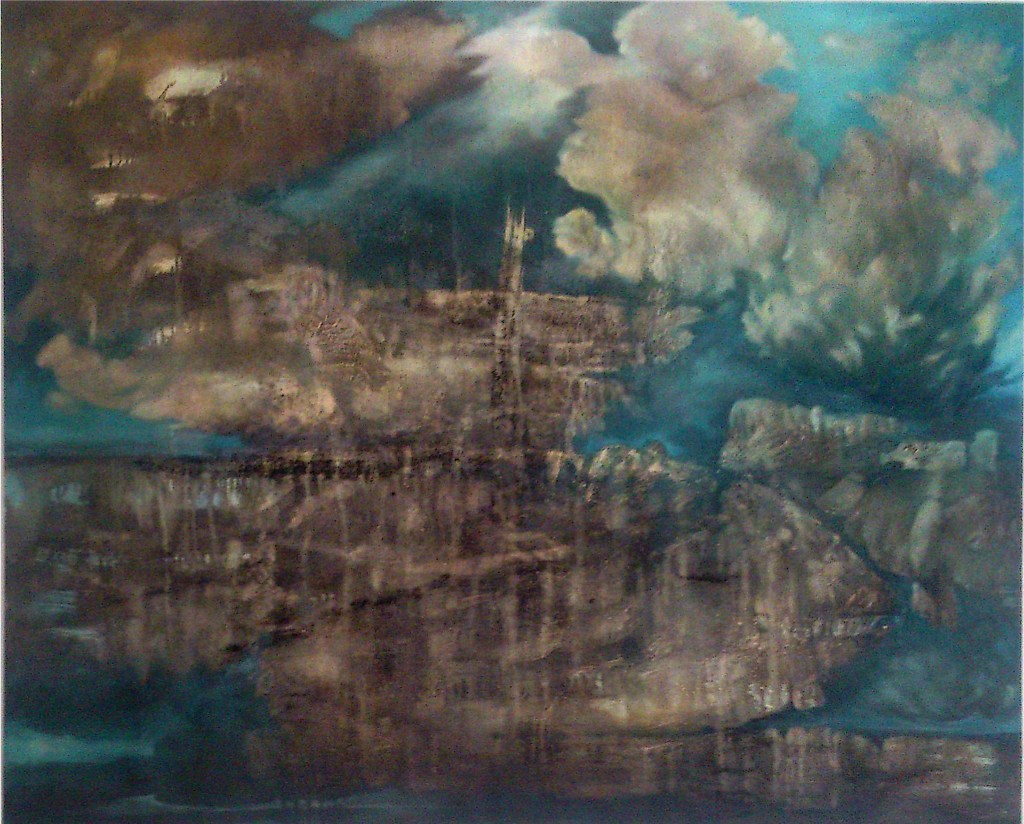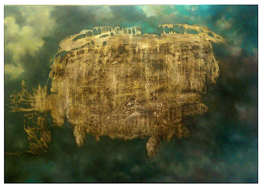 Vorrangig male ich mit Ölfarbe unter Verwendung von Lasurtechniken auf Holz, Leinwand und Sackleinen (alte Postsäcke, o.ä.). Ich verbinde in meiner Malerei Techniken/Impressionen der „Alten Meister“ mit surrealistischen Elementen.